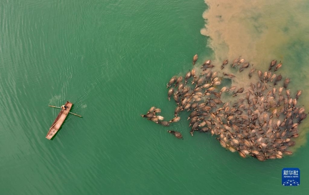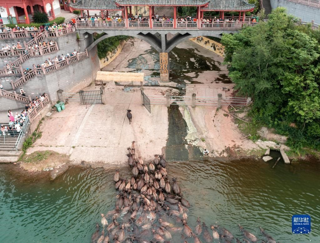 每年4-10月,在四川省南充市蓬安縣相如鎮(zhèn)油房溝村嘉陵江段,成群結隊的水牛在船只的護送引導下,清晨從岸邊結隊游上江心島啃食青草,黃昏又下水回游上岸歸欄,成為當地一道獨特的景觀,吸引不少游客前來觀看。
