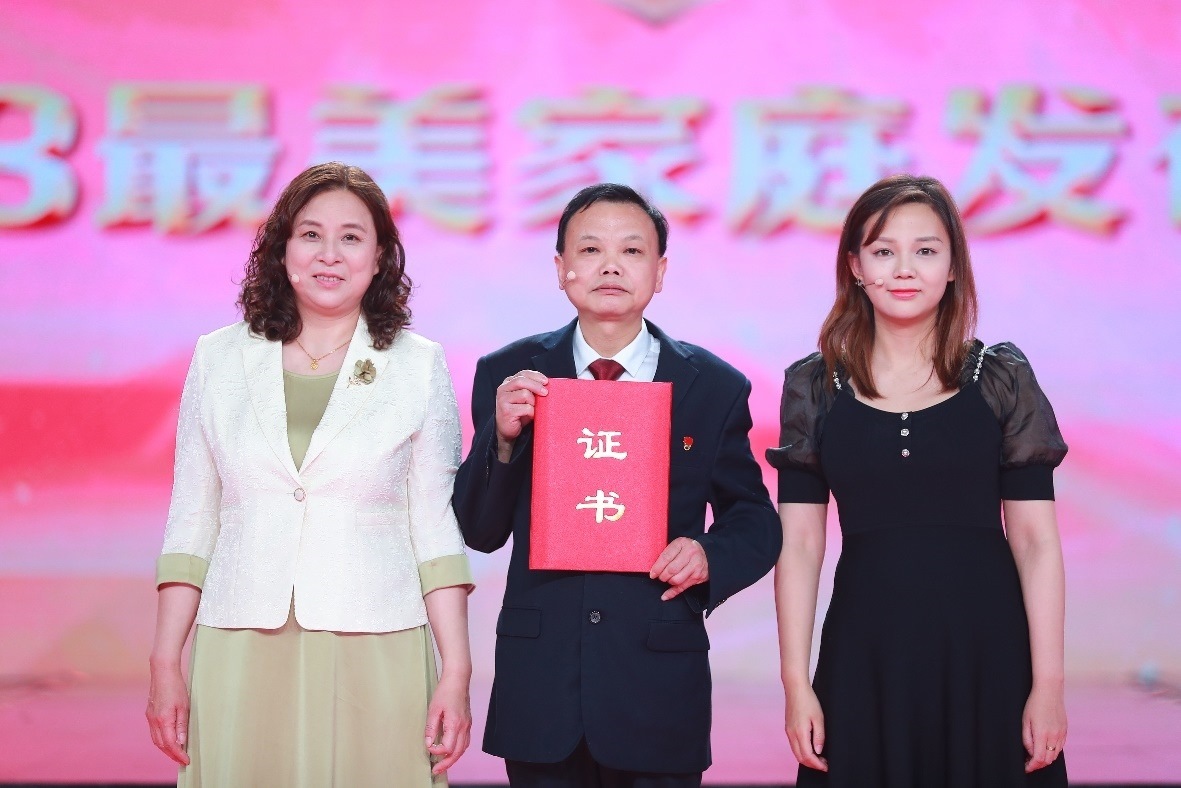 本次發(fā)布儀式以“激揚家國情,奮斗新征程”為主題,通過真實的人物短片、生動的現(xiàn)場訪談、豐富多樣的文藝節(jié)目,從不同側(cè)面講述了10戶最美家庭的感人故事和家庭成員的工作生活感悟。這10戶最美家庭是全國婦聯(lián)揭曉的2023年全國最美家庭中的典型代表,他們中有的飛天圓夢,用愛與奉獻書寫家國情深;有的傳承紅色家風,秉持“永遠跟黨走”的家訓;有的筑路興國,祖孫三代風雨同舟初心不改;有的傳承創(chuàng)新,接力守護中華優(yōu)秀傳統(tǒng)文化;有的為國戍邊,打造半個世紀不換防的“護邊驛站”;有的倡揚移風易俗,示范踐行“不要彩禮要幸?!钡奈拿餍嘛L;有的清正廉潔,用實際行動守護和傳承著“忠”“孝”“廉”的優(yōu)良家風;有的用誠信播種,助力糧食增產(chǎn)豐收;有的以書香潤家,播撒讀書立人的教育理念;有的跋山涉水,用阿肯彈唱助力民族團結(jié)……他們在家庭中積極踐行社會主義核心價值觀,在各行各業(yè)立足崗位發(fā)揚勞動精神、奮斗精神、奉獻精神、創(chuàng)造精神、勤儉節(jié)約精神,貢獻突出、事跡感人,充分展示了家庭昂揚奮進新時代新征程的良好精神風貌。