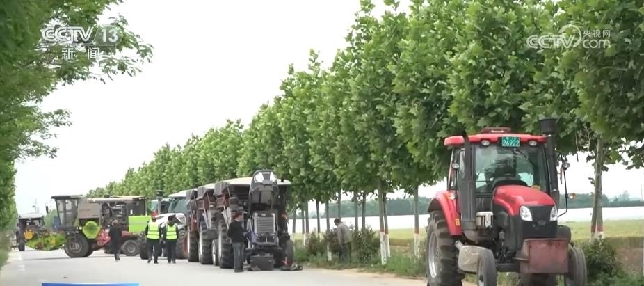 為迎接麥?zhǔn)沾竺?,連日來,河南周口各級農(nóng)機部門開始“送檢下鄉(xiāng)”“送安全技術(shù)下鄉(xiāng)”。在沈丘縣付井鎮(zhèn)外環(huán)路上,一輛輛聯(lián)合收割機和大馬力拖拉機整齊排列,農(nóng)機監(jiān)理人員進(jìn)行了認(rèn)真仔細(xì)的檢查。