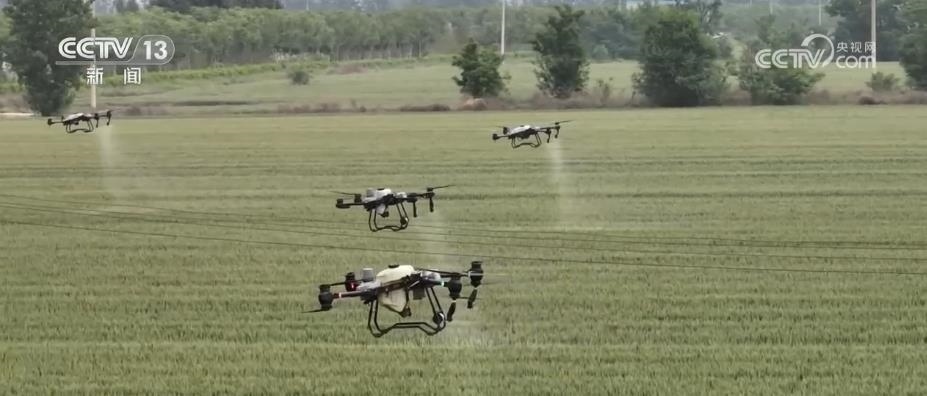 在山西運城,439萬畝小麥從北到南陸續(xù)進(jìn)入揚花灌漿關(guān)鍵期,農(nóng)技人員在田間地頭給予農(nóng)戶技術(shù)指導(dǎo)。在運城河津市村民馬關(guān)發(fā)的小麥田里,10架無人機正在麥田上方進(jìn)行噴灑作業(yè)。