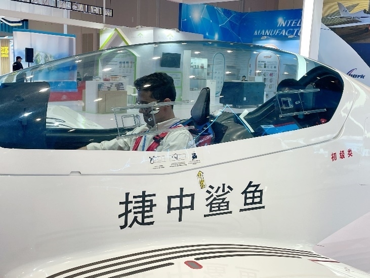 采訪團(tuán)成員在展會體驗“鯊魚飛機(jī)”