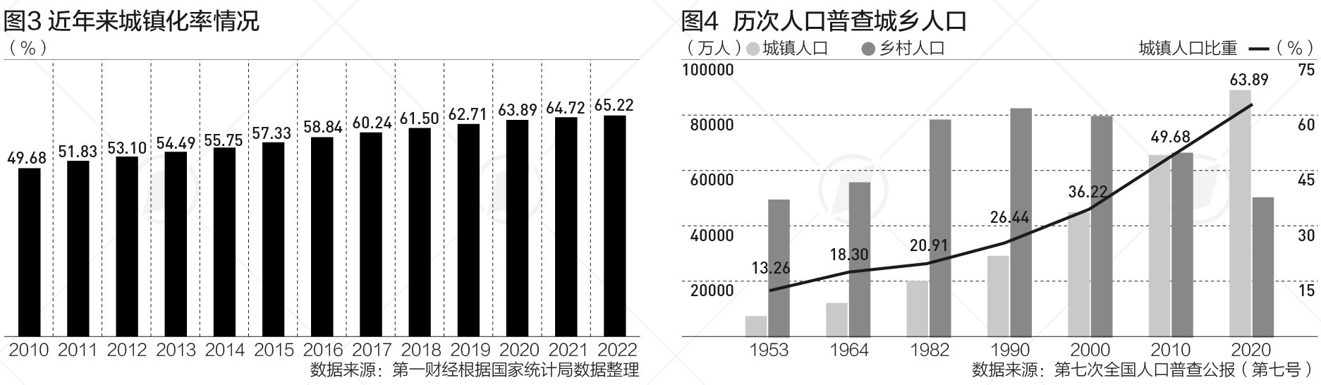 國(guó)家統(tǒng)計(jì)局?jǐn)?shù)據(jù)顯示,2022年末城鎮(zhèn)常住人口92071萬人,比上年末增加646萬人;鄉(xiāng)村常住人口49104萬人,減少731萬人;城鎮(zhèn)人口占全國(guó)人口比重(城鎮(zhèn)化率)為65.22%,比上年末提高0.50個(gè)百分點(diǎn)。