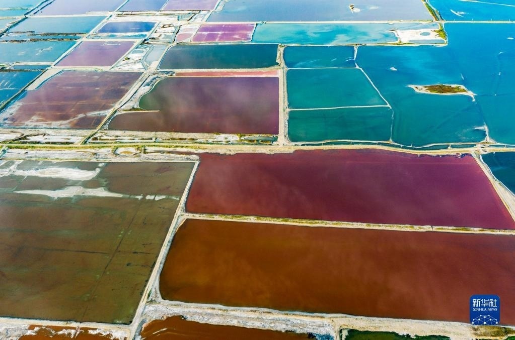 這是5月16日拍攝的運城鹽湖一景(無人機(jī)照片)。
