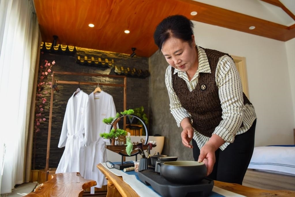 “當了一輩子農(nóng)民,沒想過從土地之外還能賺上錢。”楊玉蘭坦言,起初她并不熱心于張羅民宿生意,但2021年開始,村里游客漸增,趕上夏季旅游旺季,大量游客前往民宿消費,為她帶來每年約5萬元旅游收入。眼下,桃花村已打造22家主題民宿庭院,帶動本地就業(yè)40多人,全村人均年增收2000元。