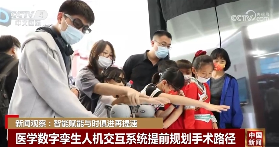 展會上,科研人員設(shè)計(jì)了一套基于全息現(xiàn)實(shí)的醫(yī)學(xué)數(shù)字孿生人機(jī)交互系統(tǒng),通過對患者數(shù)據(jù)進(jìn)行建模,在投影的孿生人上生成血管、器官等重要組織結(jié)構(gòu),輔助醫(yī)生進(jìn)行手術(shù)的路徑規(guī)劃。