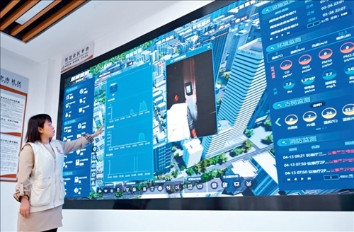 福建省福州市鼓樓區(qū)是國家智能社會治理綜合實驗基地,社區(qū)工作者在鼓樓區(qū)鼓東街道中山社區(qū)介紹“智慧社區(qū)”建設情況(2023年4月25日攝)林善傳攝/本刊