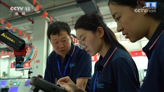 武漢華中數(shù)控股份有限公司副總裁李社林:“高職學(xué)校把數(shù)控的理論已經(jīng)夯實了,但是應(yīng)用,學(xué)校不可能像企業(yè)這樣實時更新。在這個課程里面不但可以開數(shù)控機(jī)床,還能開工業(yè)機(jī)器人,同時還能夠進(jìn)行智能制造教學(xué),這樣就把原來的單一技術(shù),變成整體的智能制造技術(shù)訓(xùn)練?!?/p>