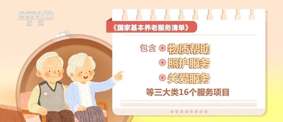 《國(guó)家基本養(yǎng)老服務(wù)清單》的內(nèi)容,包含物質(zhì)幫助、照護(hù)服務(wù)、關(guān)愛(ài)服務(wù)等三大類16個(gè)服務(wù)項(xiàng)目。