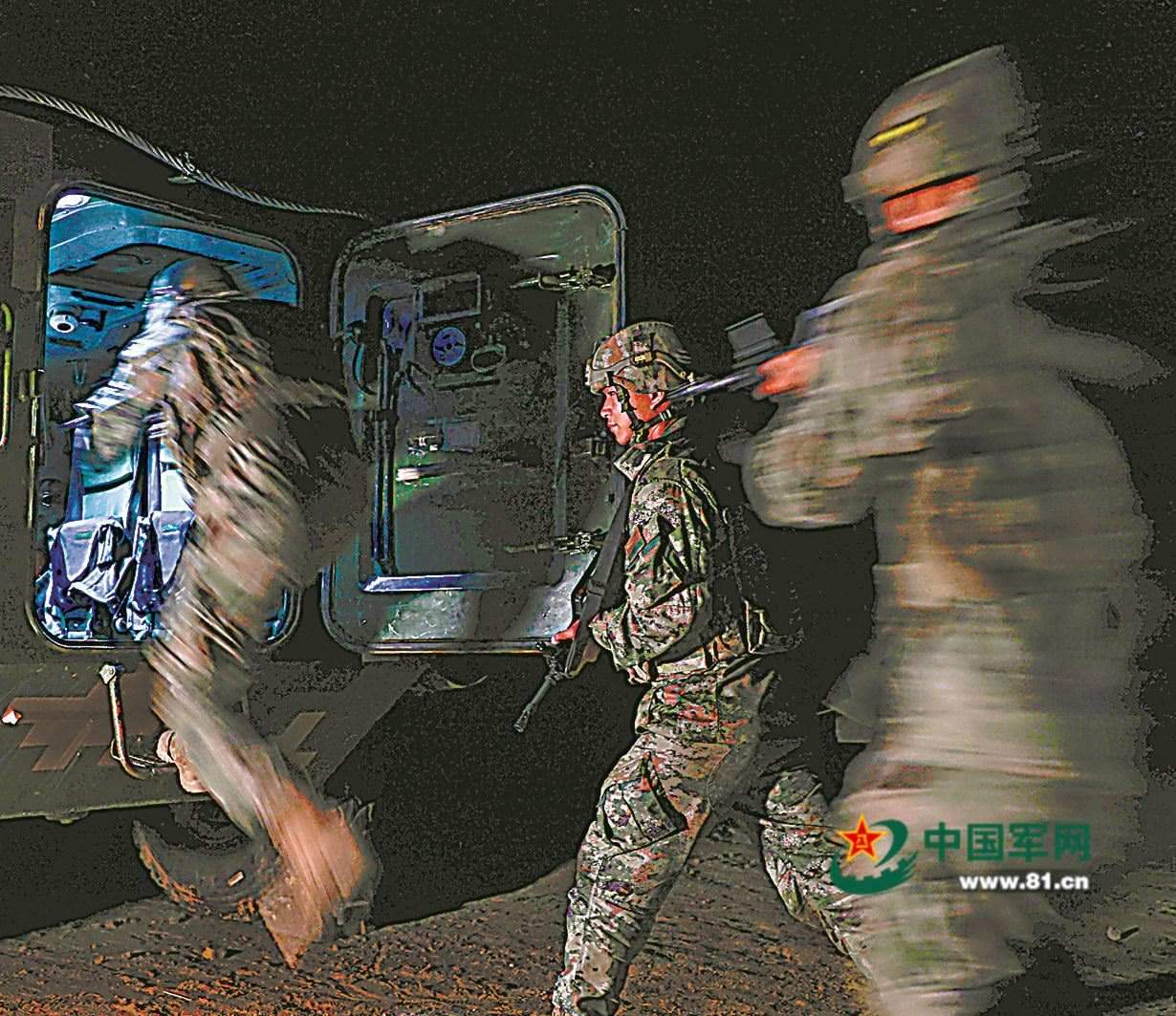 隊(duì)員快速登車(chē)。