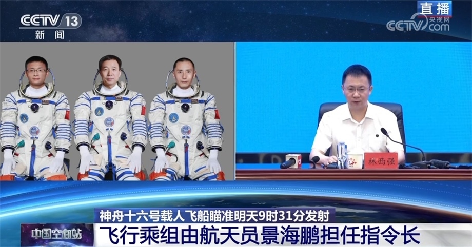 央視網(wǎng)消息:昨天(5月28日),任務(wù)總指揮部召開會議,研究確定了神舟十六號載人飛船發(fā)射計(jì)劃和航天員飛行乘組。今天,我們邀請到中國載人航天工程辦公室副主任、工程新聞發(fā)言人林西強(qiáng)先生給大家介紹情況,并回答各位感興趣的問題。