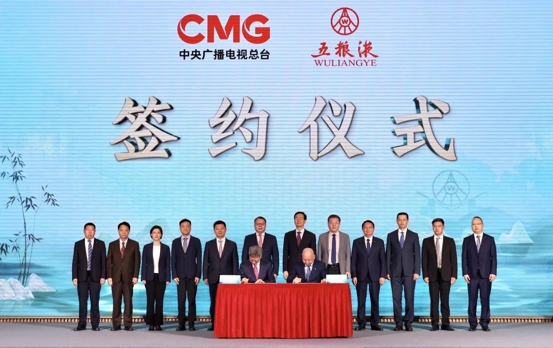 在彭健明、方存好、廖文彬、曾從欽以及總臺華語環(huán)球節(jié)目中心主任李欣雁,財經(jīng)節(jié)目中心副主任(主持工作)蔡俊,央視國際網(wǎng)絡(luò)有限公司董事長、央視頻融媒體發(fā)展有限公司總經(jīng)理過彤,四川總站副站長(主持工作)樊承志,四川總站副召集人鄭直,宜賓市副市長羅春濤,五糧液集團(股份)公司黨委副書記肖浩,五糧液股份公司總經(jīng)理助理、五糧液品牌事業(yè)部總經(jīng)理黃太國的共同見證下,總臺總經(jīng)理室副召集人徐立軍與五糧液股份公司副總經(jīng)理劉洋現(xiàn)場簽署了品牌建設(shè)戰(zhàn)略合作協(xié)議。