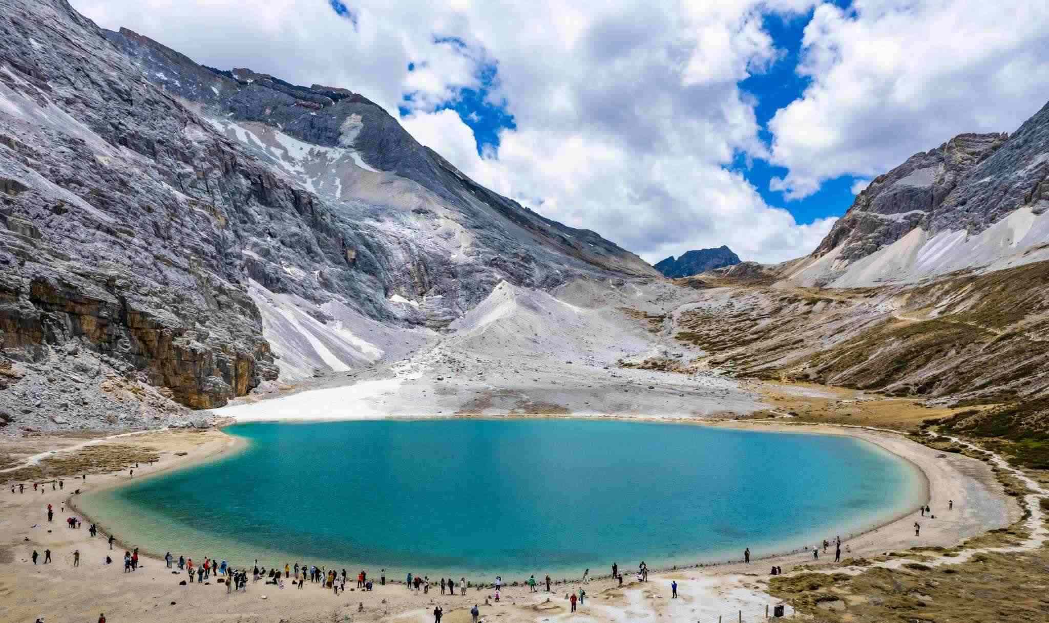 2023年5月25日,四川甘孜,航拍稻城縣亞丁自然保護(hù)區(qū)的牛奶海景區(qū)。視覺中國(guó)