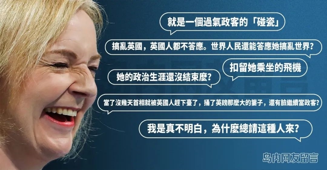 譚主檢索了與特拉斯竄臺相關的島內媒體報道,發(fā)現(xiàn)一個很有代表性的質問:“對于這么一個失敗、短命、在政壇喪失影響力的前首相,你們還在天真地認為她竄臺對臺灣有好處嗎?”