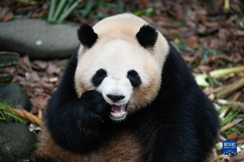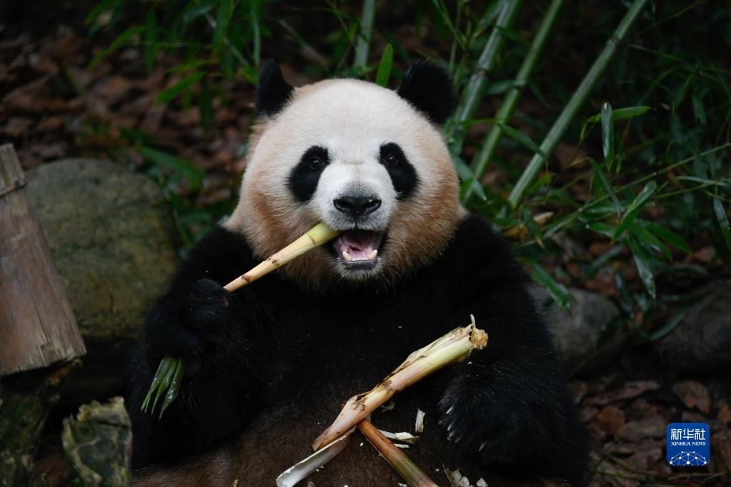 5月29日,在成都大熊貓繁育研究基地都江堰野放繁育研究中心,梅蘭在吃竹筍。