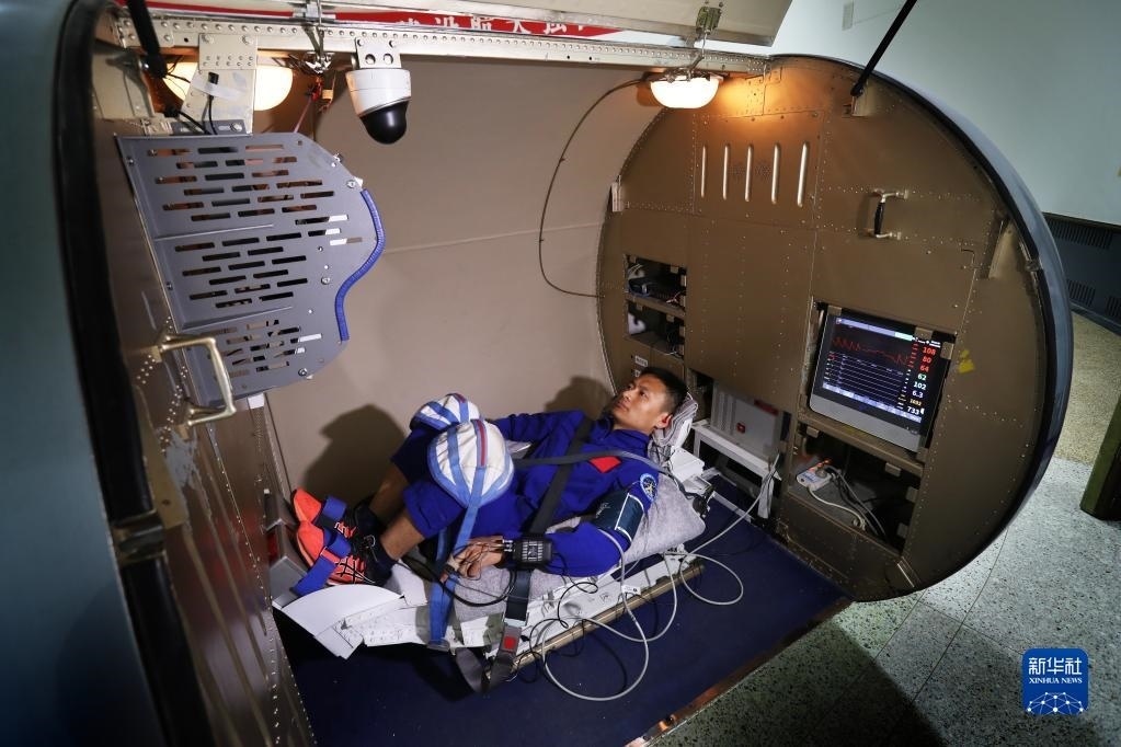 神舟十六號航天員乘組進(jìn)行醫(yī)學(xué)研究項(xiàng)目操作(2023年3月9日攝)。新華社發(fā)(徐部 攝)