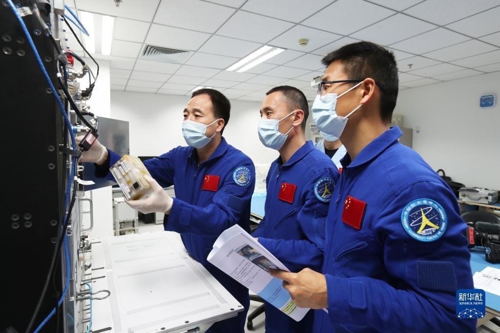 神舟十六號航天員乘組在人船合練中交流(2022年9月23日攝)。新華社發(fā)(徐部 攝)
