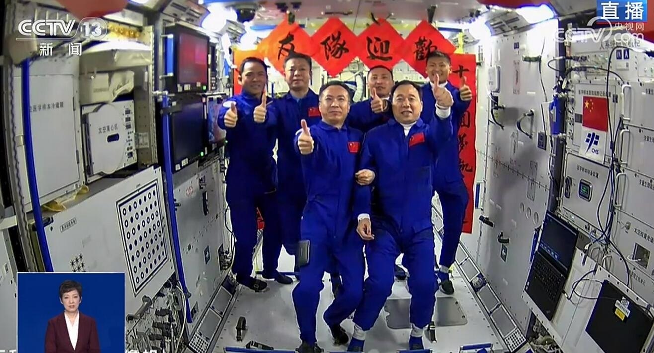 央視網(wǎng)消息:宇宙星河浪漫,探索永不止步。今天(5月30日)9時31分,搭載神舟十六號載人飛船的長征二號F遙十六運載火箭在酒泉衛(wèi)星發(fā)射中心點火發(fā)射,發(fā)射任務取得圓滿成功。神舟十六號航天員景海鵬、朱楊柱、桂海潮順利進入太空。神舟十六號載人飛船入軌后,在16時29分成功對接于空間站天和核心艙徑向端口。之后,神舟十六號航天員乘組從飛船返回艙進入軌道艙。翹盼已久的神舟十五號航天員乘組打開“家門”,歡迎遠道而來的神舟十六號航天員乘組入駐“天宮”。