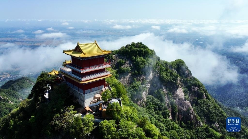 雨后初霽,位于陜西西安長安區(qū)境內的的秦嶺終南山南五臺景區(qū)云霧環(huán)繞,宛若仙境。終南山南五臺景區(qū)古稱太乙山,海拔1688米,有“終南神秀”美譽。