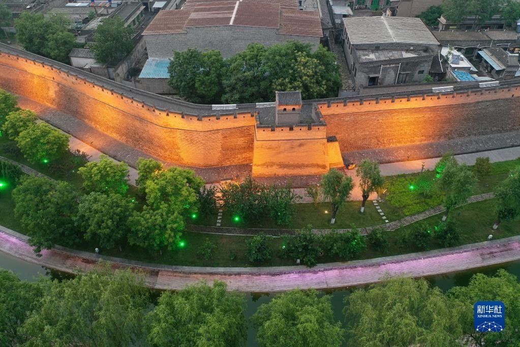 游客在平遙古城城墻上游覽(5月30日攝,無(wú)人機(jī)照片)。