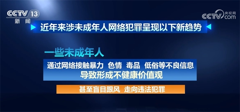 據(jù)最高檢相關(guān)部門負(fù)責(zé)人介紹,近年來涉未成年人網(wǎng)絡(luò)犯罪呈現(xiàn)以下新趨勢:未成年人觸網(wǎng)低齡化日趨明顯,更易遭受網(wǎng)絡(luò)不法侵害;利用網(wǎng)絡(luò)侵害未成年人犯罪手段復(fù)雜多樣,方式不斷翻新,“網(wǎng)絡(luò)誘騙”“隔空猥褻”等新類型犯罪隱蔽性強(qiáng)、打擊難度大;一些未成年人通過網(wǎng)絡(luò)接觸暴力、色情、毒品、低俗等不良信息,導(dǎo)致形成不健康價值觀,甚至盲目跟風(fēng)、走向違法犯罪;未成年人高額打賞、高額充值、過度消費(fèi)、沉迷網(wǎng)絡(luò),網(wǎng)絡(luò)企業(yè)追求經(jīng)濟(jì)利益、未成年人保護(hù)措施不力等問題較為普遍,反映出網(wǎng)絡(luò)空間監(jiān)管整治形勢日益復(fù)雜嚴(yán)峻,為未成年人營造良好網(wǎng)絡(luò)環(huán)境難度日漸加大。