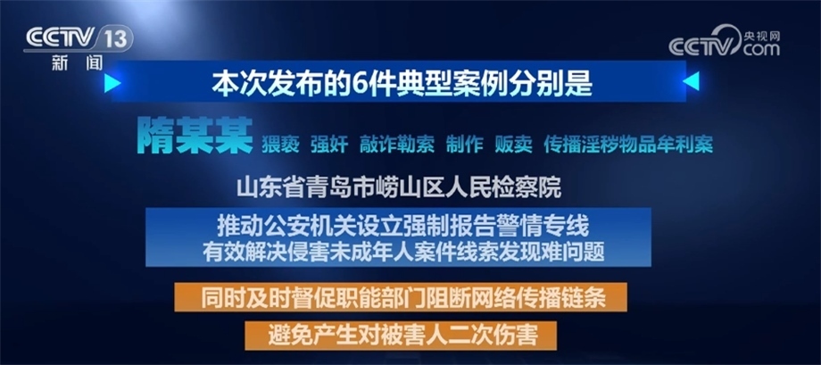 隋某某猥褻、強(qiáng)奸、敲詐勒索、制作、販賣、傳播淫穢物品牟利案。山東省青島市嶗山區(qū)人民檢察院推動公安機(jī)關(guān)設(shè)立強(qiáng)制報告警情專線,有效解決侵害未成年人案件線索發(fā)現(xiàn)難問題。同時,及時督促職能部門阻斷網(wǎng)絡(luò)傳播鏈條,避免產(chǎn)生對被害人二次傷害。