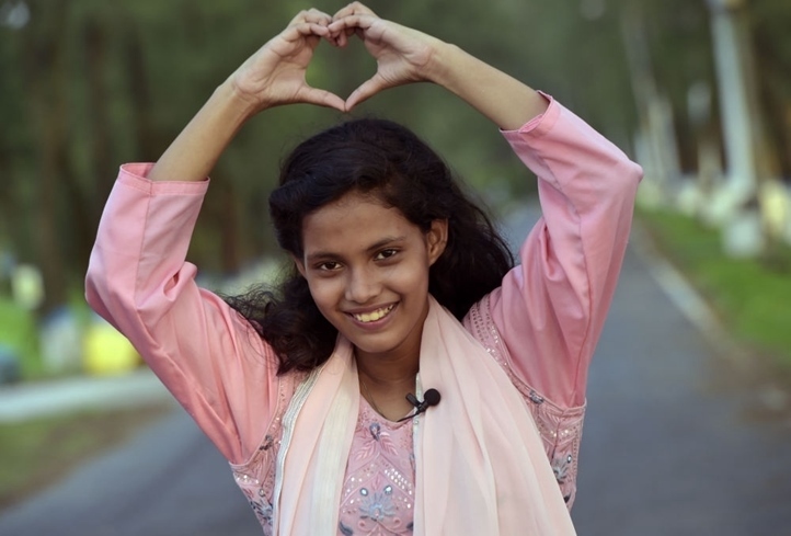 2023年5月26日,沁在孟加拉國(guó)做出愛心手勢(shì)表達(dá)對(duì)中國(guó)的愛意。新華社發(fā)