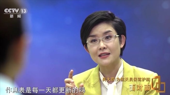 吳大蔚:其實(shí)我想的是怎么樣保證他們安全很健康容光煥發(fā)地回到地面,以一個(gè)良好的形態(tài)為我們建設(shè)期最后一次任務(wù)做一個(gè)漂亮的收官,所以我們把所有努力都放在這了。