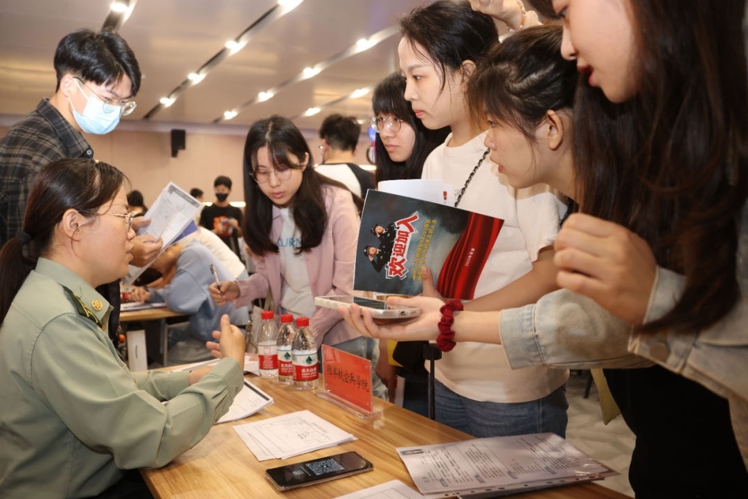 這次洽談活動,讓學(xué)生們更加詳細了解了文職人員的職能定位、使命任務(wù)以及隊伍建設(shè)情況。就讀于該校外國語學(xué)院英語口譯專業(yè)的碩士研究生梁玉靜說:“我讀本科時就報名參軍了,由于種種原因沒能如愿,這次你們來洽談又給了我機會,真希望能通過這次活動走進夢想中的軍營,為國防和軍隊建設(shè)做貢獻。”