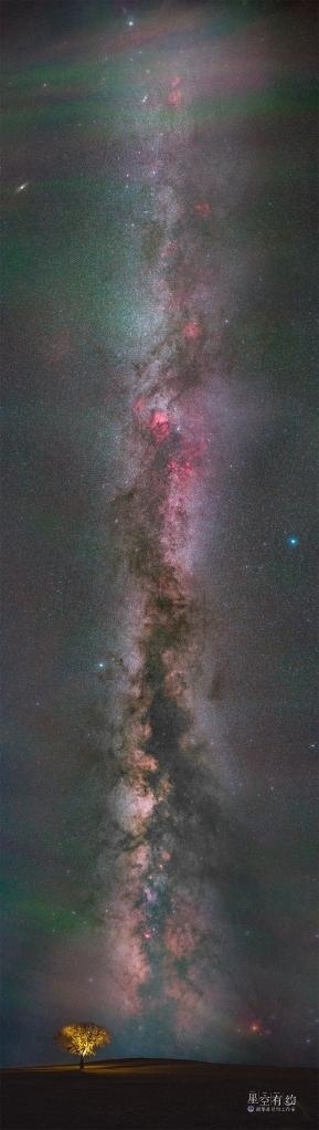 “用中焦拍攝時(shí),可以采用被拍攝人物距離鏡頭稍遠(yuǎn)、用銀心當(dāng)背景的剪影方式,這樣能體現(xiàn)出宇宙的浩渺和人類的渺小的對(duì)比,讓畫面更富意境。此時(shí)焦點(diǎn)要對(duì)到被拍攝人物身上,拍出來的效果會(huì)比較夢(mèng)幻;如果采用廣角拍攝,可以展示銀河更多的內(nèi)容,被拍攝人物根據(jù)構(gòu)圖需求站位合適就可以。需要注意的是,在長(zhǎng)曝光期間,被拍攝人物要保持不動(dòng),以確保拍出來后人像清晰,如有必要,可進(jìn)行合理補(bǔ)光,也可結(jié)合光繪攝影進(jìn)行更豐富的創(chuàng)作?!蓖蹩》逭f。