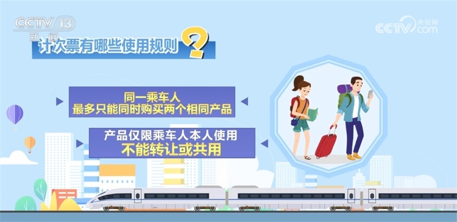 鐵路12306科創(chuàng)中心高級技術(shù)經(jīng)理 王永峰:20次計次票指的是旅客可以在90天內(nèi)最多使用20次,在購買產(chǎn)品時指定區(qū)間、指定席別的這樣一個產(chǎn)品。定期票指的是一個可以在30日內(nèi)最多乘坐60次指定區(qū)間和席別的車次。目前,計次票是按照常規(guī)票價的九五折來進行定價,定期票有一個上限次數(shù)是30日最多乘坐60次,但是我們定價是按照44次來定價。