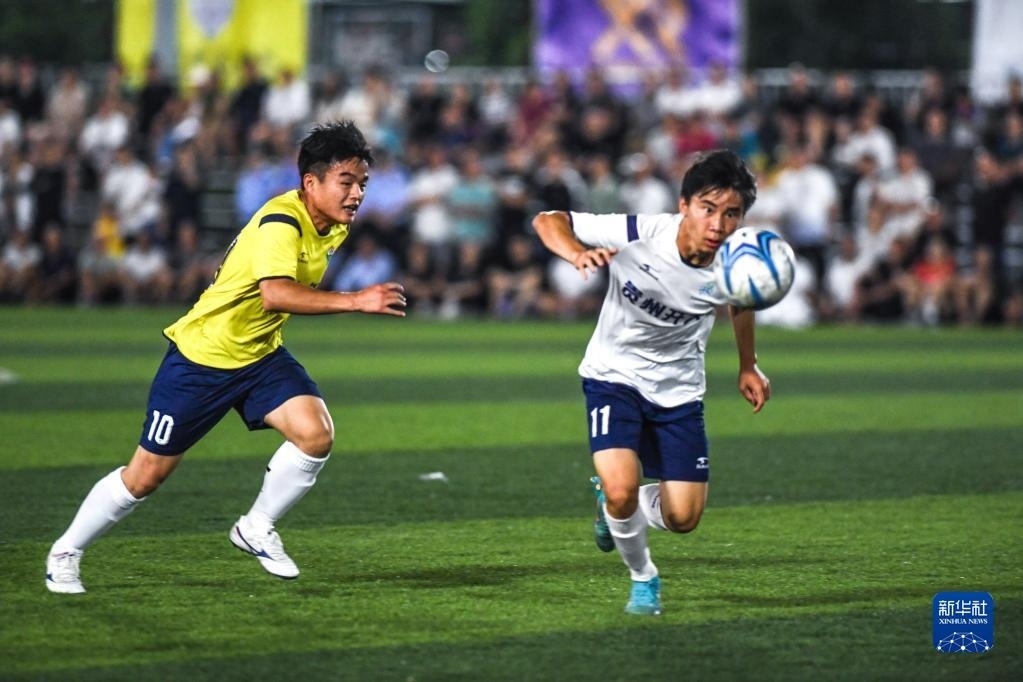 6月9日,鳳凰村足球隊(duì)與新中村足球隊(duì)在“村超”比賽中。