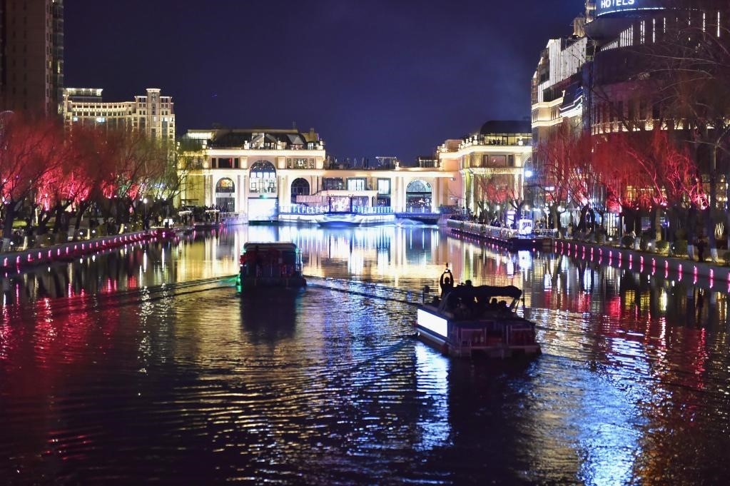 2023年3月18日,游船行駛在亮馬河上。新華社記者陳鐘昊 攝