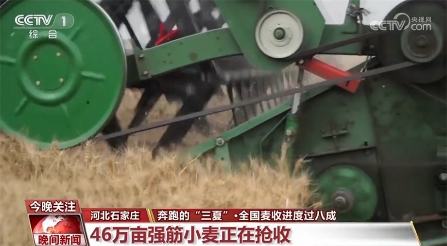 河北省石家莊市藁城區(qū)的46萬畝強筋小麥正在搶收,今年這里的小麥進(jìn)一步推行規(guī)模化種植、標(biāo)準(zhǔn)化生產(chǎn)、專業(yè)化收儲。