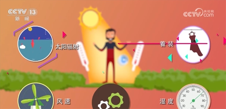 原來(lái),人體對(duì)溫度的感覺(jué)還受到氣溫本身之外多種因素的影響,如濕度、風(fēng)速、太陽(yáng)輻射、著裝甚至心情等。例如,當(dāng)氣溫35.6℃時(shí),如果相對(duì)濕度為45%,人體就會(huì)感受到40℃的高溫,如果相對(duì)濕度達(dá)到65%,體感溫度將接近50℃。持續(xù)的高溫天氣會(huì)使人體感到不適,工作效率降低,中暑、腸道疾病和心腦血管疾病等的發(fā)病率增多。