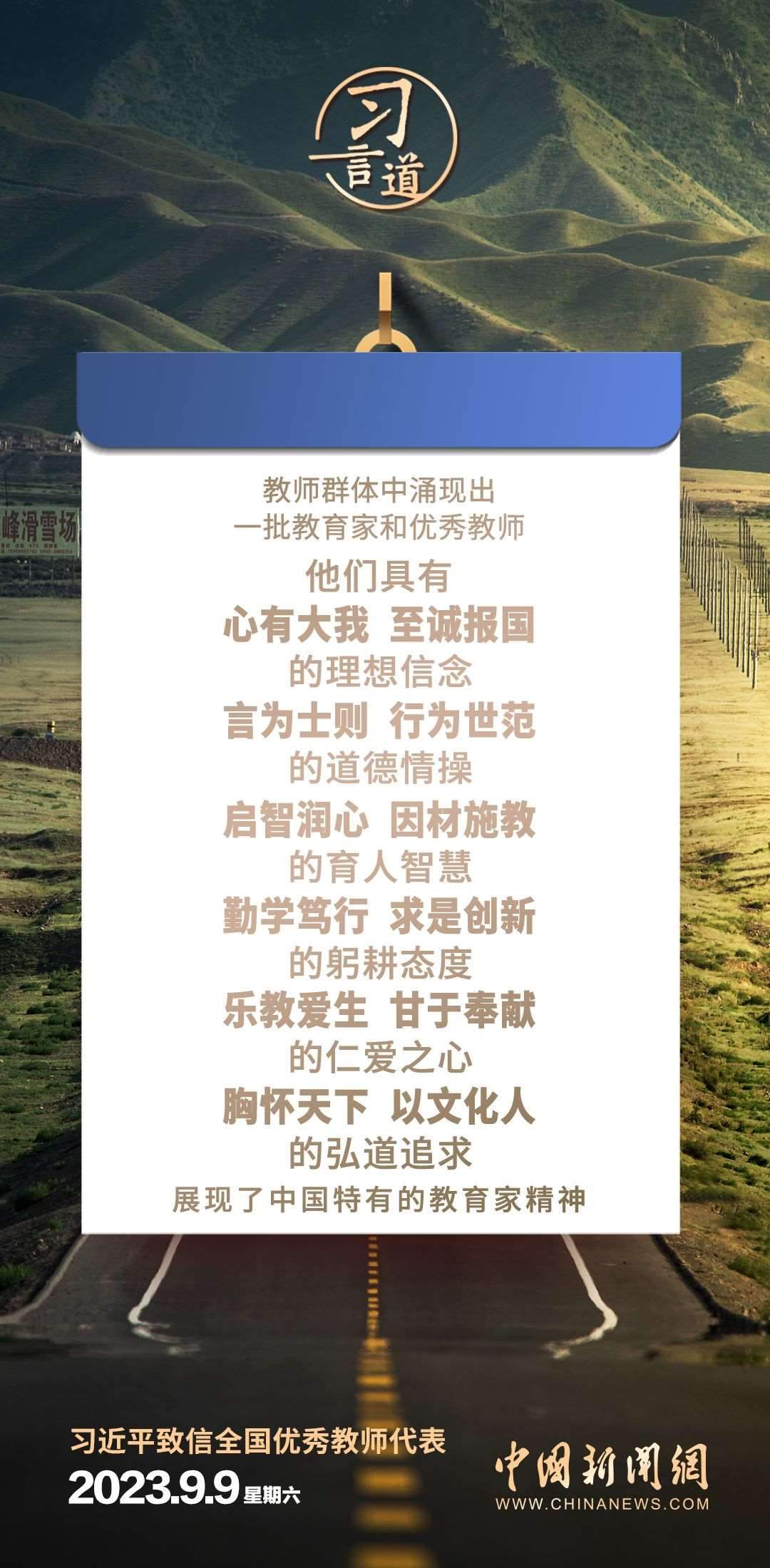 全國(guó)優(yōu)秀教師代表座談會(huì)9月9日在京召開。中共中央總書記、國(guó)家主席、中央軍委主席習(xí)近平致信與會(huì)教師代表,在第三十九個(gè)教師節(jié)到來之際,代表黨中央,向他們和全國(guó)廣大教師及教育工作者致以節(jié)日的問候和誠(chéng)摯的祝福。習(xí)近平指出——