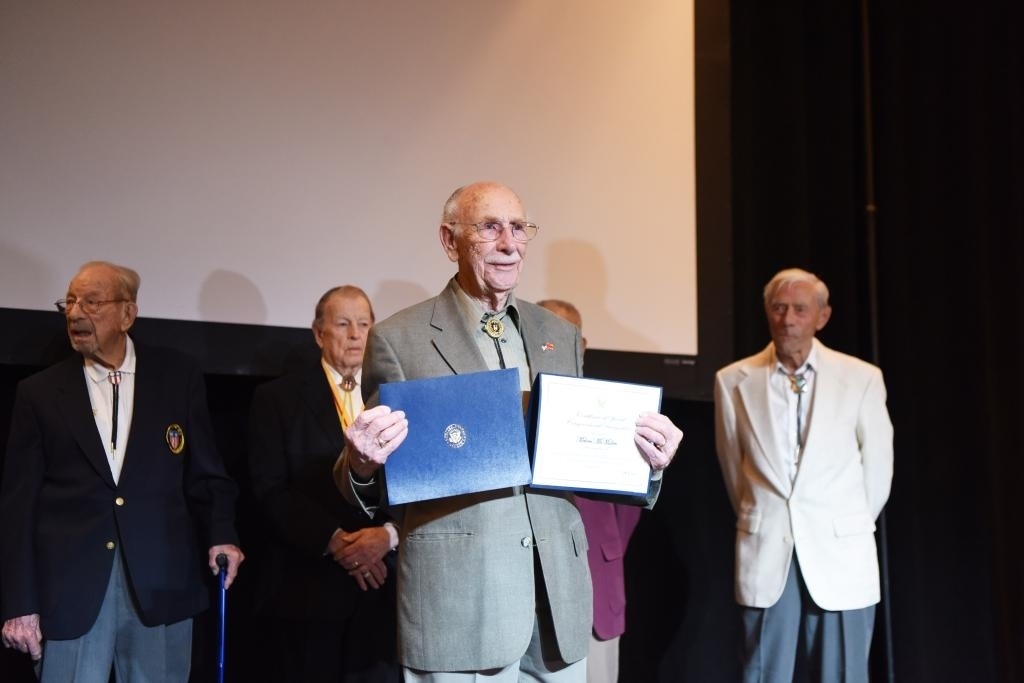 2019年5月11日,在美國(guó)拉斯維加斯舉行的中美二戰(zhàn)友誼暨飛虎隊(duì)歷史論壇上,飛虎隊(duì)老兵麥克馬倫(前)獲頒證書。