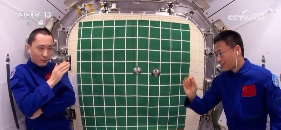 在約48分鐘的授課中,神舟十六號航天員景海鵬、朱楊柱、桂海潮生動展示介紹了空間站夢天實(shí)驗(yàn)艙工作生活場景,演示了球形火焰實(shí)驗(yàn)、奇妙“乒乓球”實(shí)驗(yàn)、動量守恒實(shí)驗(yàn)以及又見陀螺實(shí)驗(yàn),并生動講解了實(shí)驗(yàn)背后的科學(xué)原理。授課期間,航天員通過視頻通話形式與地面課堂師生進(jìn)行了實(shí)時(shí)互動交流。
