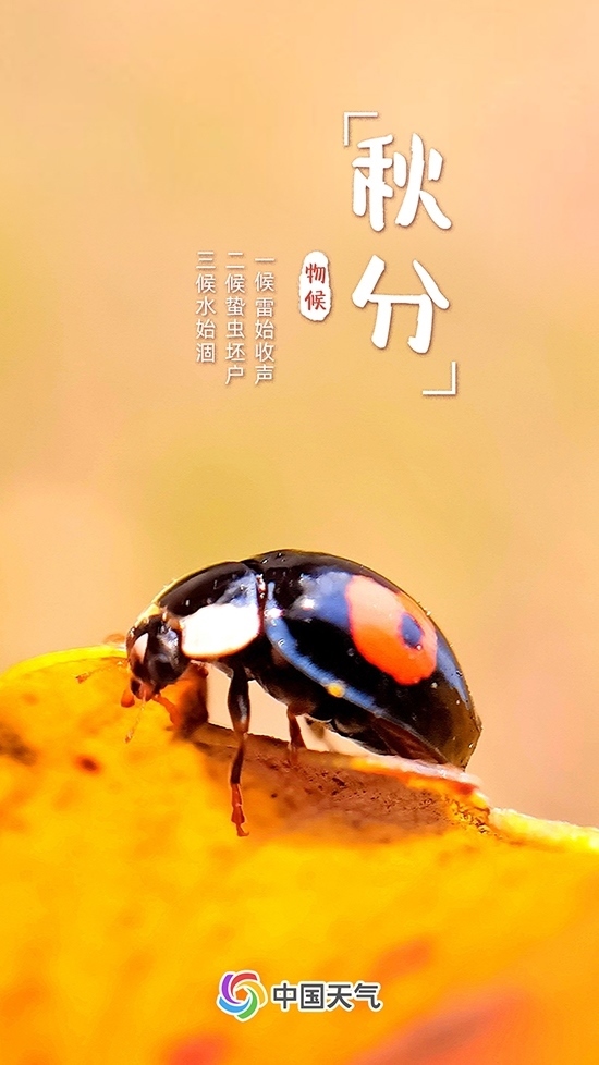 秋分有三候,一候雷始收聲;二候蟄蟲(chóng)坯戶;三候水始涸。秋分時(shí)節(jié)雷聲逐漸終結(jié),蟄居的小蟲(chóng)開(kāi)始藏入穴中,河流和湖泊水量變少。