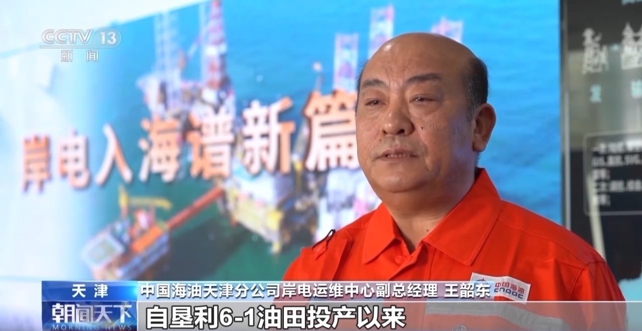 中國(guó)海油天津分公司岸電運(yùn)維中心副總經(jīng)理 王韶東:自墾利6-1油田投產(chǎn)以來(lái),岸電應(yīng)用工程已累計(jì)供電約3800萬(wàn)度。按照設(shè)計(jì)規(guī)模,岸電三期工程全部投用后,渤海油田約75%的海上平臺(tái)將實(shí)現(xiàn)岸電供給。