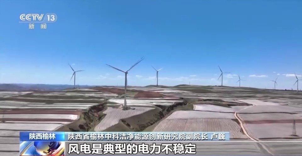 陜西省榆林中科潔凈能源創(chuàng)新研究院副院長 盧巍:風電是典型的電力不穩(wěn)定,風大多一點,風小少一點,然后再就是這個光伏,今天有太陽,可能發(fā)得就多一點,今天陰天,可能就發(fā)得少一點,甚至不發(fā)電。