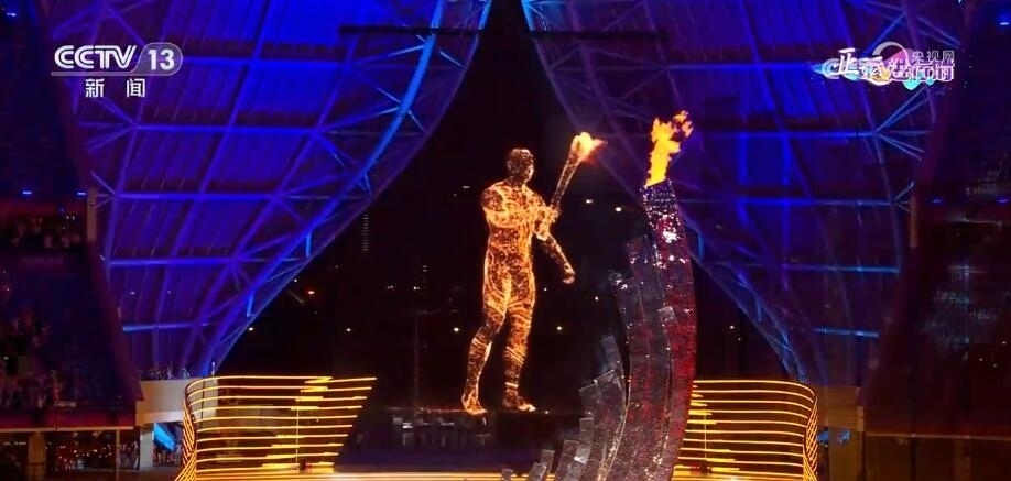 同時(shí),以數(shù)字虛擬現(xiàn)實(shí)技術(shù)、裸眼3D視覺特效、全景交互為代表的新技術(shù)手段輪番上陣,令觀眾仿佛穿越千年時(shí)光,沉浸式感受宋韻風(fēng)雅??偱_(tái)提供大量錢塘江大潮實(shí)拍素材,融入地屏和網(wǎng)幕影像,生動(dòng)呈現(xiàn)大潮涌動(dòng)、勇立潮頭的澎湃效果,展現(xiàn)出運(yùn)動(dòng)健兒奮勇拼搏的體育精神。亞運(yùn)歷史上首次實(shí)現(xiàn)的“數(shù)實(shí)結(jié)合”的點(diǎn)火儀式,極富沖擊力的畫面為觀眾營(yíng)造出充滿想象與寫意的視覺奇觀。