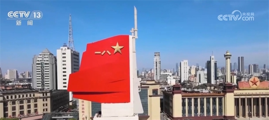 這里是江西省南昌市中心的八一廣場(chǎng),八一南昌起義紀(jì)念塔巍然矗立,塔頂有一面用棗紅色磨光花崗石做成的八一軍旗,形象地表現(xiàn)南昌起義開始中國(guó)共產(chǎn)黨獨(dú)立領(lǐng)導(dǎo)武裝斗爭(zhēng)、人民軍隊(duì)從此光榮誕生這一偉大主題?!澳喜穷^的槍聲”如“劃破夜空的一道閃電”,從此軍旗獵獵向前進(jìn)。