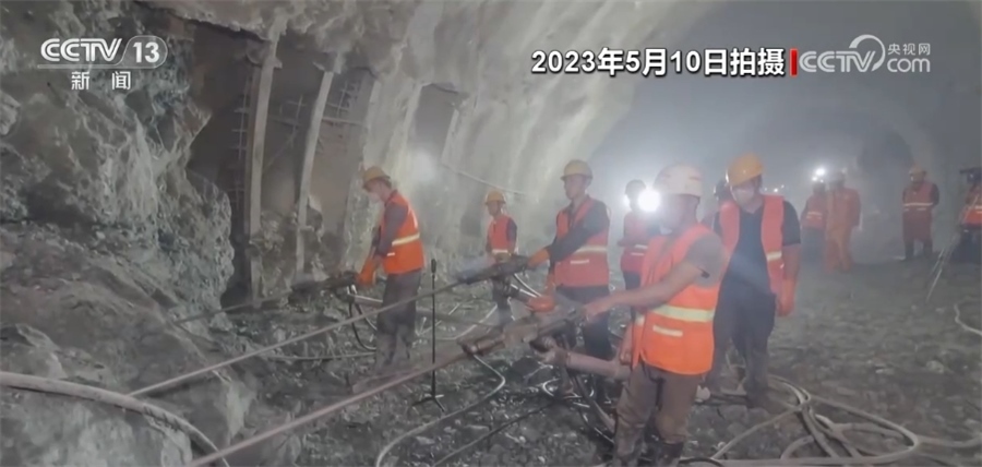 總臺記者 劉文杰:現在是5月10日,工人們正在進行的作業(yè)是對隧道的支護進行拆換,整個拆換作業(yè)現在只剩最后的30米,可以說,整個隧道的建設也進入了沖刺階段。