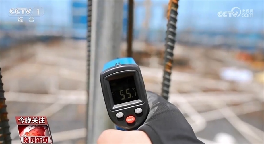 總臺(tái)央視記者 張鵬軍:我們來看一看這個(gè)鋼管的溫度,55℃,再來看這個(gè)樓頂木板的溫度,68.5℃。