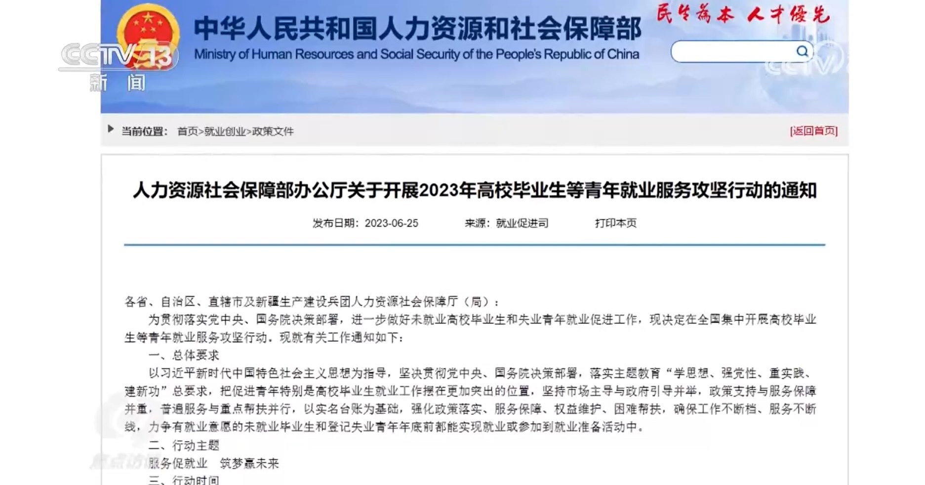 6月25日,人力資源社會保障部印發(fā)通知,部署啟動2023年高校畢業(yè)生等青年就業(yè)服務(wù)攻堅(jiān)行動,要求省級人力資源社會保障部門7月底前,要建立2023屆未就業(yè)畢業(yè)生實(shí)名臺賬。