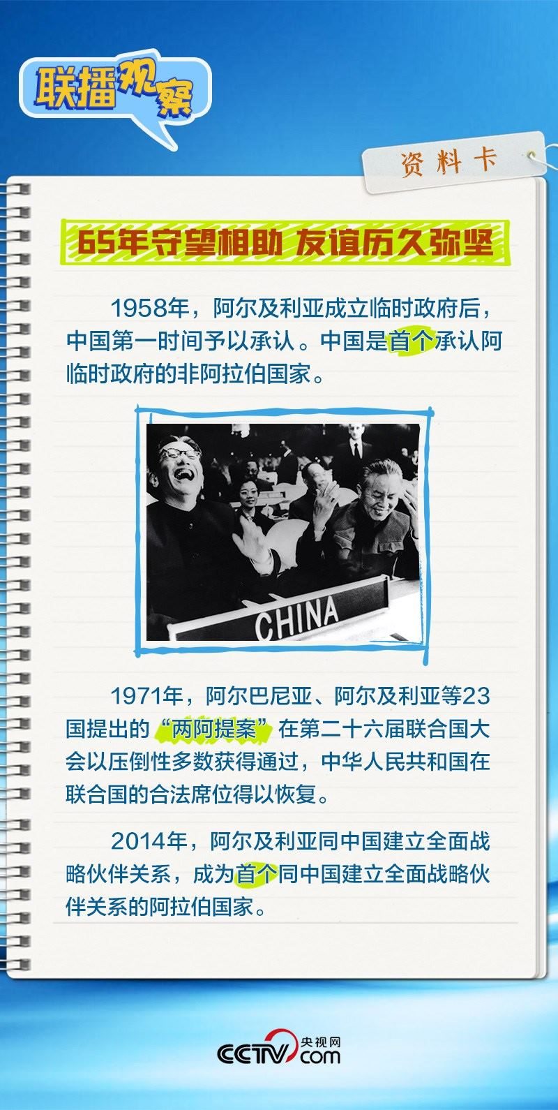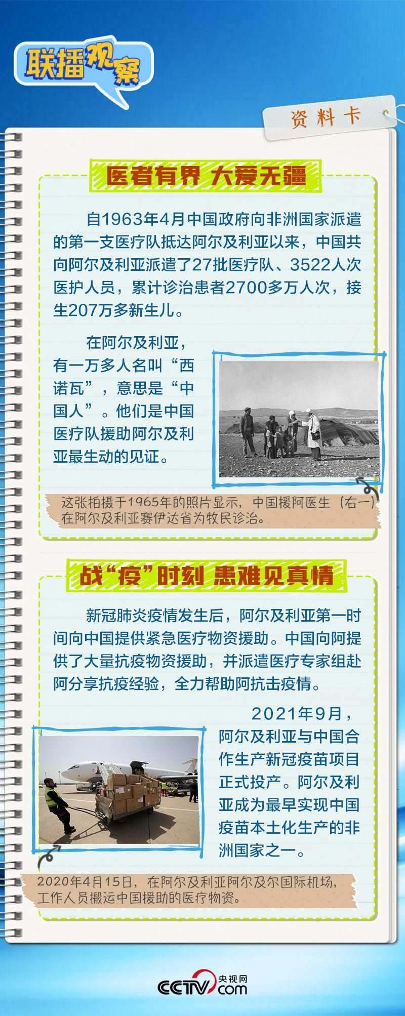 會談中,習(xí)主席特別提到,今年是中國向阿爾及利亞派遣醫(yī)療隊60周年,并稱贊此舉樹立了“中阿友誼的豐碑”。中阿傳統(tǒng)友誼深厚,兩國始終相互尊重、平等相待、彼此支持,締造了一段段友好交往的佳話。