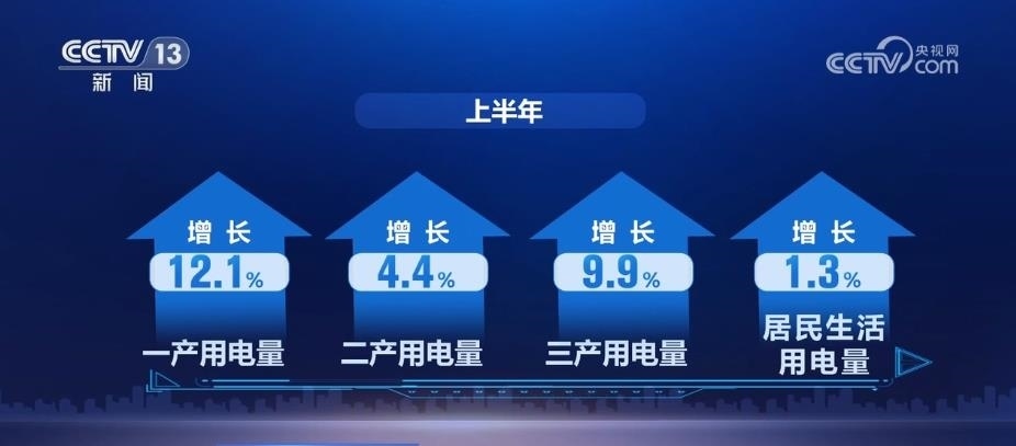 從用電情況看,上半年,全國(guó)全社會(huì)用電量同比增長(zhǎng)5.0%。其中,一產(chǎn)、二產(chǎn)、三產(chǎn)和居民生活用電量分別增長(zhǎng)12.1%、4.4%、9.9%和1.3%。