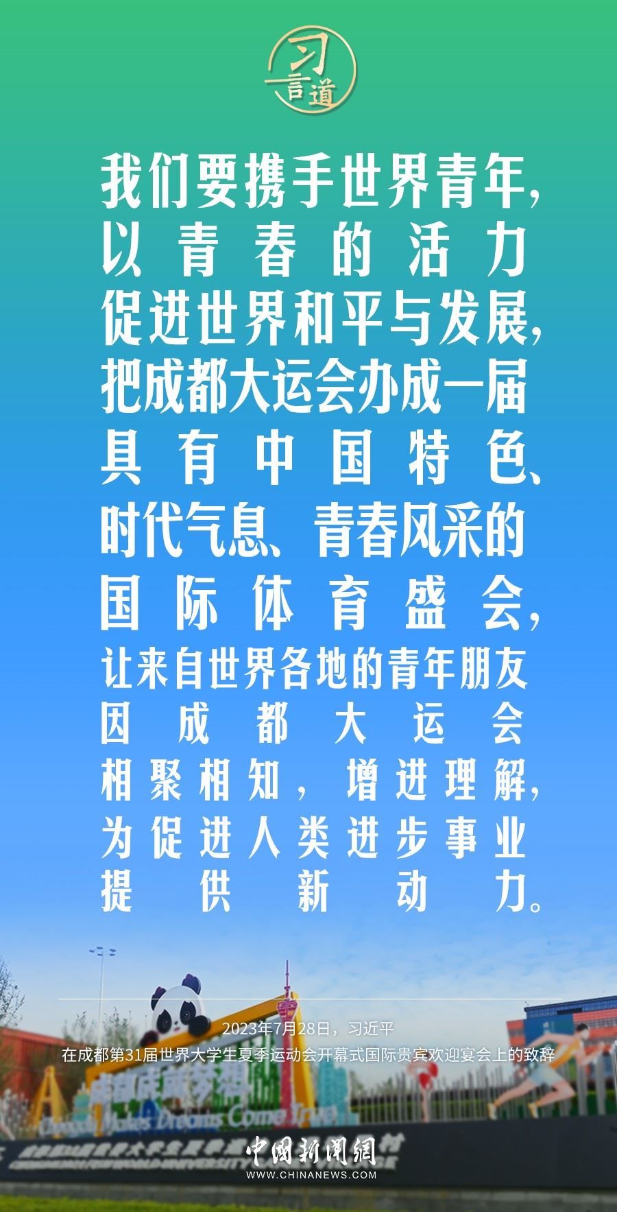 7月28日中午,國(guó)家主席習(xí)近平和夫人彭麗媛在四川省成都市金牛賓館舉行宴會(huì),歡迎出席成都第31屆世界大學(xué)生夏季運(yùn)動(dòng)會(huì)開幕式的國(guó)際貴賓。習(xí)近平發(fā)表致辭稱——