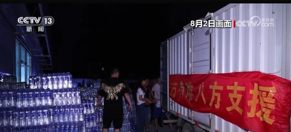 保定新發(fā)地聯(lián)農(nóng)蔬菜果品批發(fā)市場(chǎng)工作人員 劉立國(guó):咱們帶來(lái)的有礦泉水,有黃瓜、西紅柿,包括面包,還有香蕉等等。一整車(chē)的物資有十幾噸。