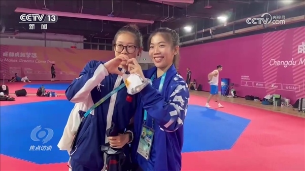 成都大運(yùn)會(huì),是青春的盛會(huì),也是一次友誼的盛會(huì)。來(lái)自世界各國(guó)的大學(xué)生們,一起競(jìng)技,一起生活。他們交流著彼此的運(yùn)動(dòng)技巧,同時(shí)也交流著彼此的文化和觀點(diǎn)。正在中國(guó)地質(zhì)大學(xué)就讀的跆拳道運(yùn)動(dòng)員羅妙溢,在成都大運(yùn)會(huì)中遇到了自己的偶像——東京奧運(yùn)會(huì)跆拳道女子49公斤級(jí)冠軍、泰國(guó)選手班妮巴。在自己不比賽的時(shí)候,羅妙溢會(huì)專門來(lái)給班妮巴加油。